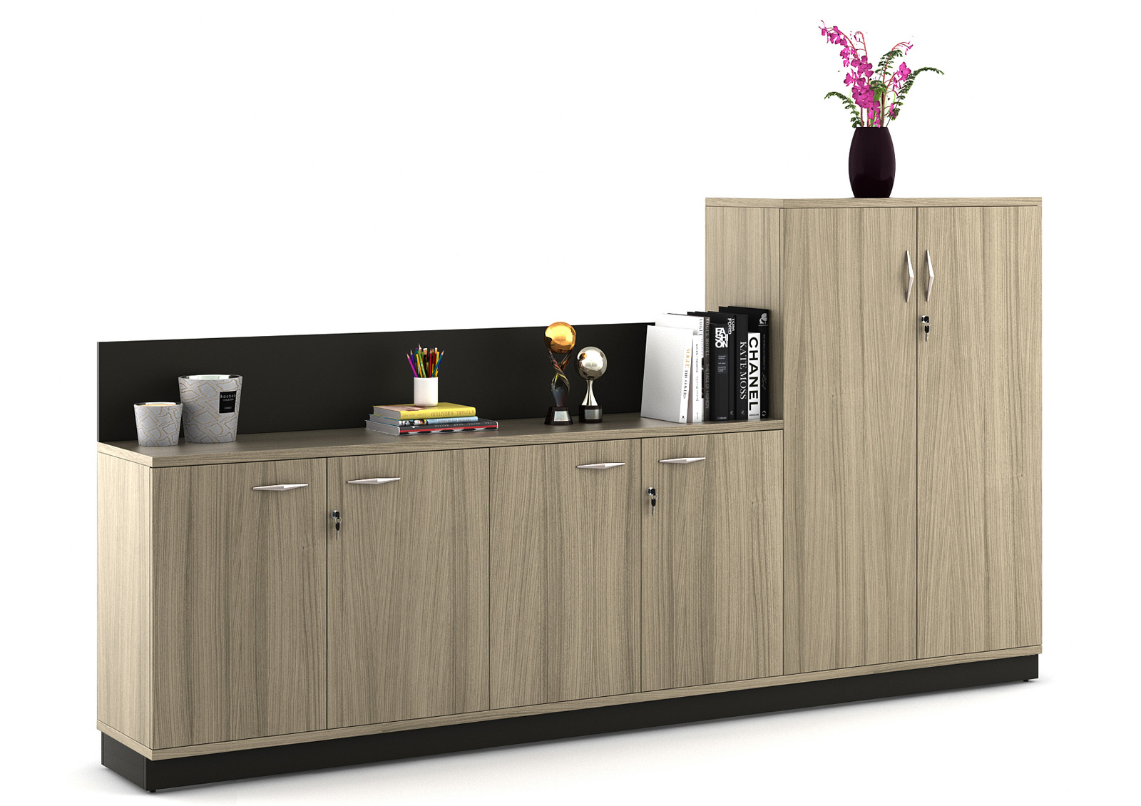 The Admiral Full Height Storage unit offers extensive vertical space for all your organizational needs. With its tall design and multiple shelves, it provides ample room for books, files, and other essentials. Crafted with a sleek finish, this storage solution not only maximizes functionality but also adds a modern touch to any office or home environment. Keep your space tidy and stylish with this versatile unit!