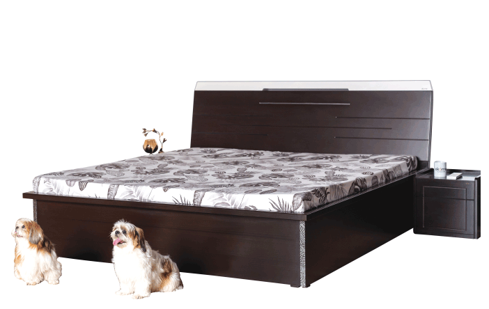 White Glossy Element & Metal Profile on Headboard Adds To the Elegance of the Bed