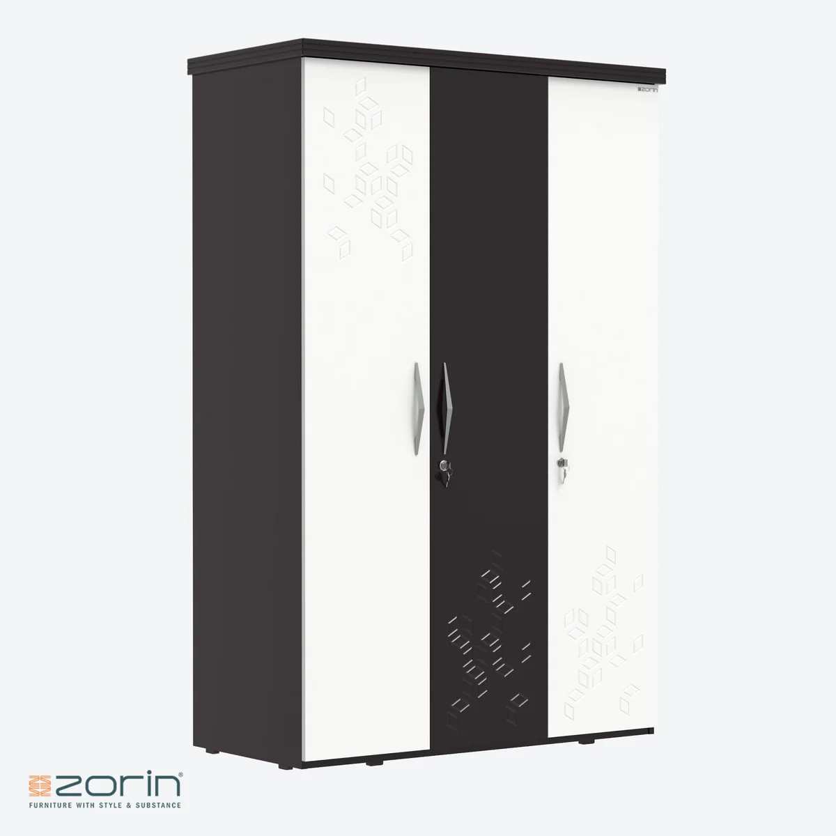Its elegant design features three doors, sleek handles, and a smooth finish, adding a touch of sophistication to your space. Stay organized and stylish with this versatile wardrobe, a must-have for any modern home.