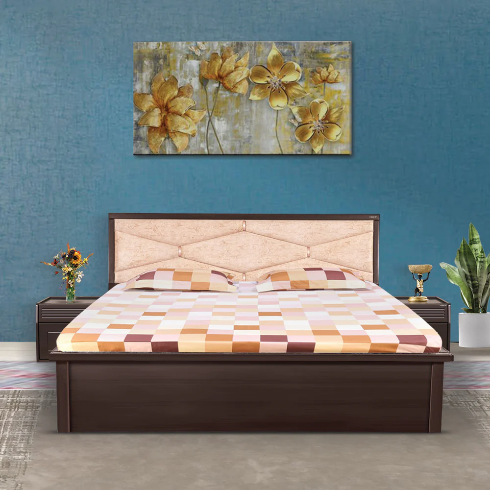 Built with cutting-edge all-side lamination, the Hexa King Bed is shielded against moisture and everyday wear, promising years of reliable use. Embracing eco-consciousness, it's fashioned from recycled wood, making it a sustainable choice for your home.